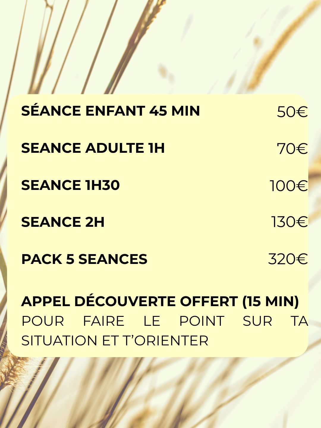 SÉANCES ET TARIFS
